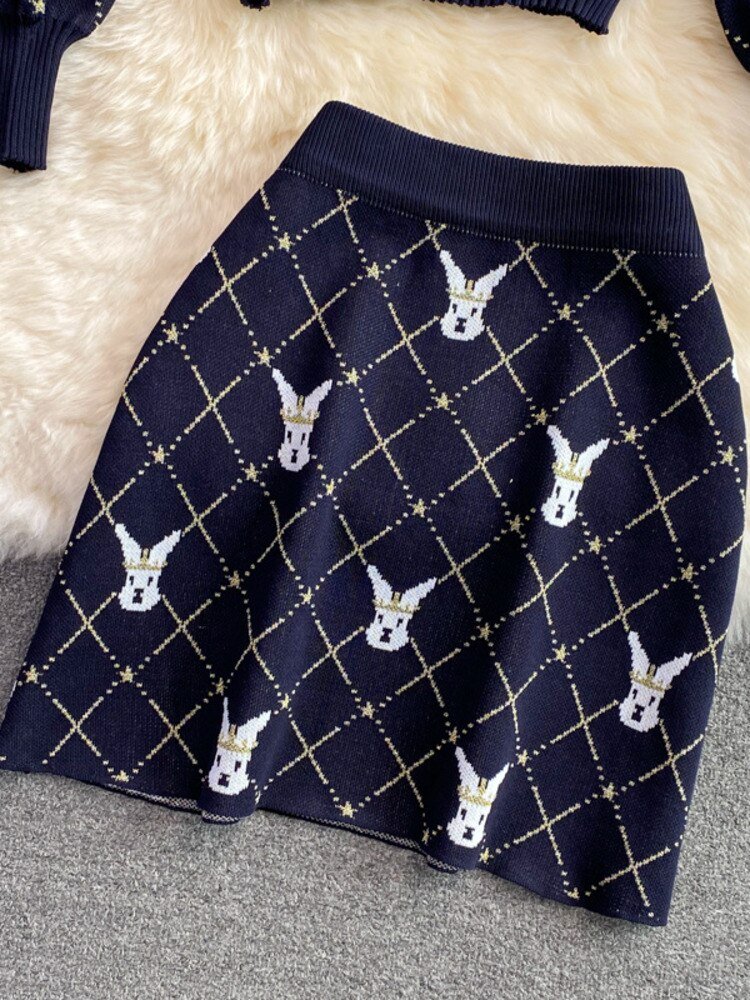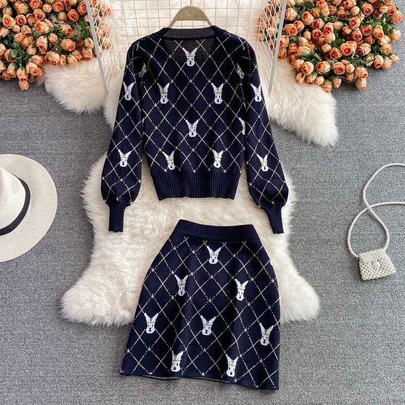 Conjunto de dos piezas tejido de punto fino estilo retro para mujer