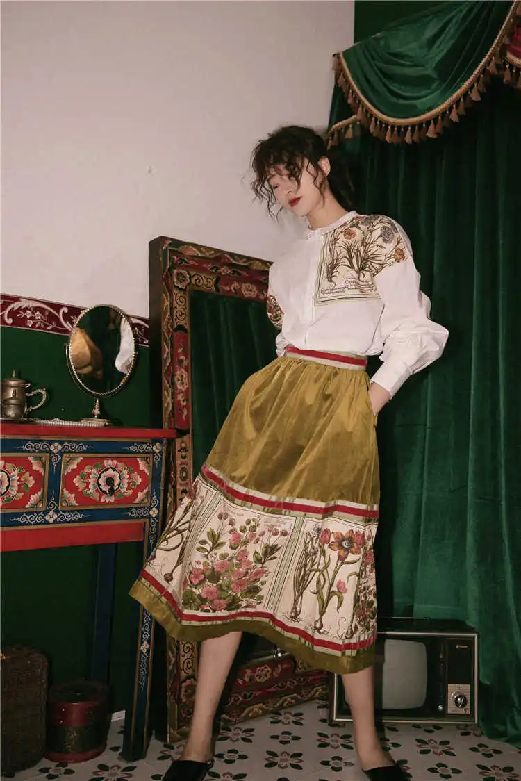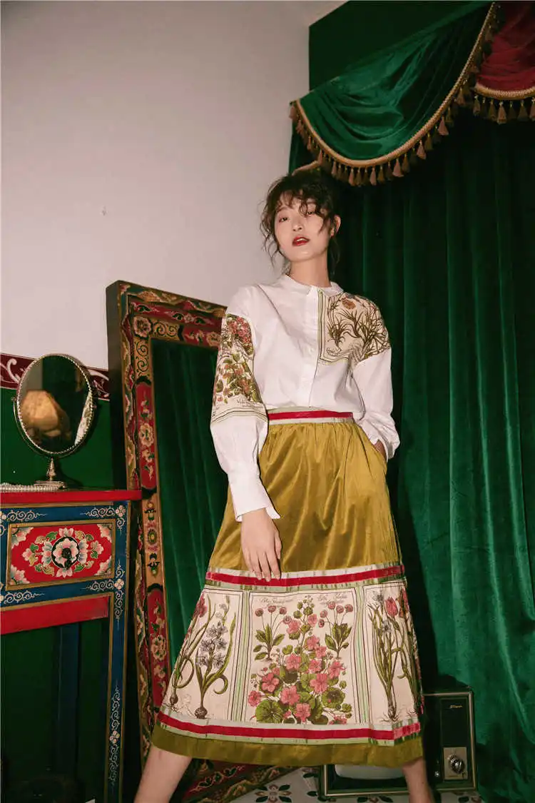 Sé el primero en valorar “Falda tubo de terciopelo con estampado botánico”