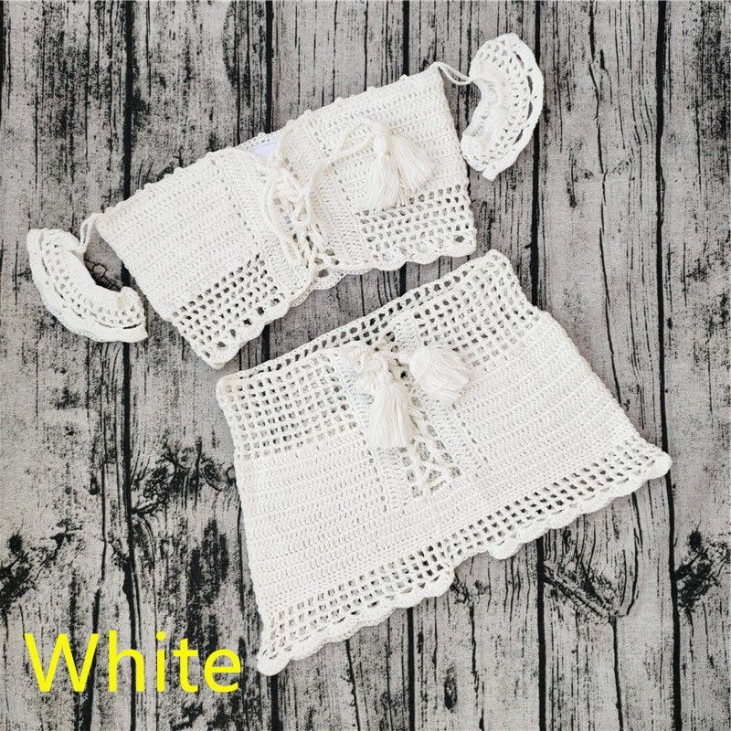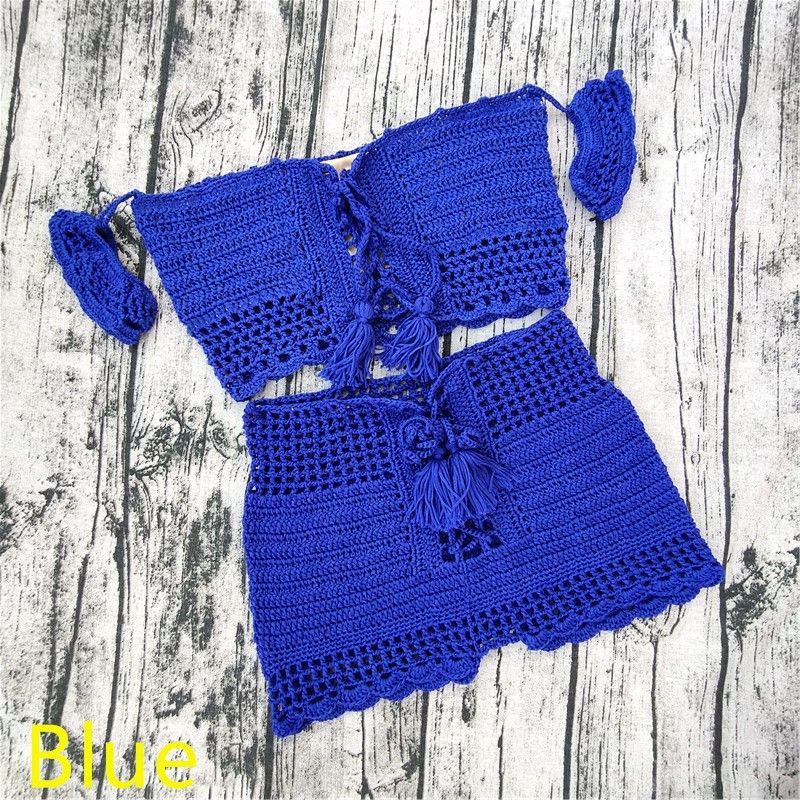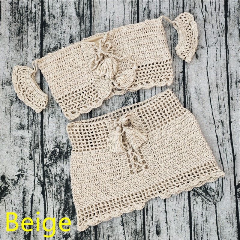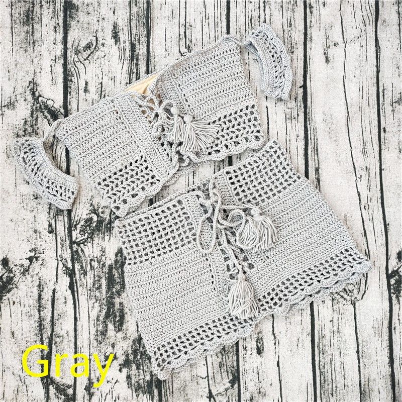 Conjunto de playa estilo bohemio de ganchillo, top hombros descubiertos y pantalón corto para mujer